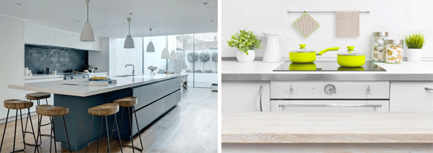 Kao i kupatilo, omogućava upotrebu različitih boja. Boja može promeniti način posmatranja (percepciju) čitavog prostora i učiniti da vizuelno izgleda veće i prostranije, uz jasan pečat vašeg stila. Današnja paleta je raznovrsnija sa istaknutim tonovima plave, sive i indigo boje. Među ovim bojama postoje različite nijanse koje možete sami birati i korigovati u odnosu na, pre svega, stil kuhinje koji uključuje pod, viseće elemente, radnu površinu i tehniku. Često se kombinuju na primer žuta i siva boja ili plava i zelena. U odabiru vodite se ili komplementarnim bojama koje se nalaze jedna do druge na točku boja (žuta i ljubičasta, plava i narandžasta, crvena i zelena) ili suprotnim tonovima koje najpre smiruju i utišavaju ton čitave prostorije.
